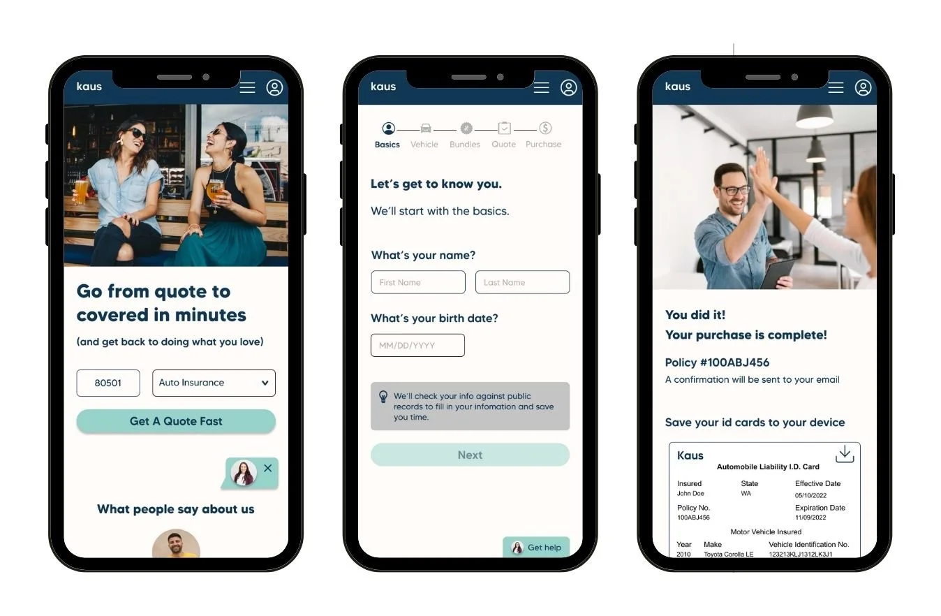 Kaus is a large insurance company that has been selling all types of policies through regional agents for over 30 years. In order to capture a younger market, they wanted to refresh their brand and create a responsive website that made the experience of buying insurance fast and frustration-free.