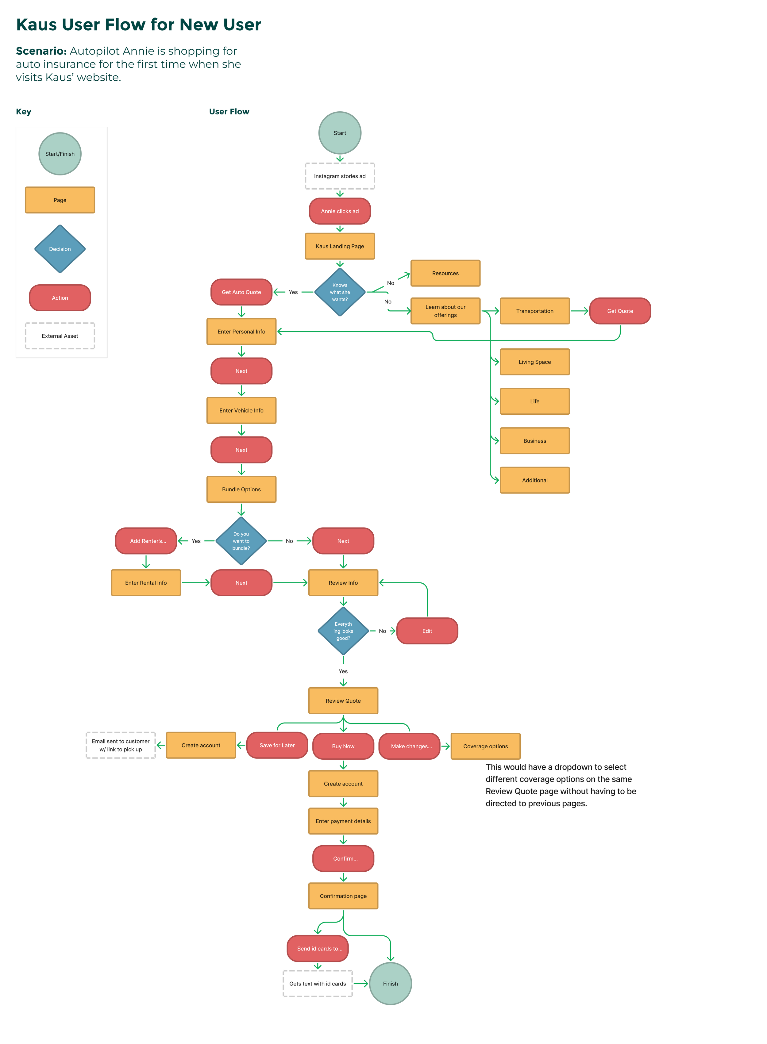 User research revealed that our persona, Autopilot Annie, likely only needed auto insurance, and she wanted it as fast as possible. I chose to make this the primary focus of my design solution.